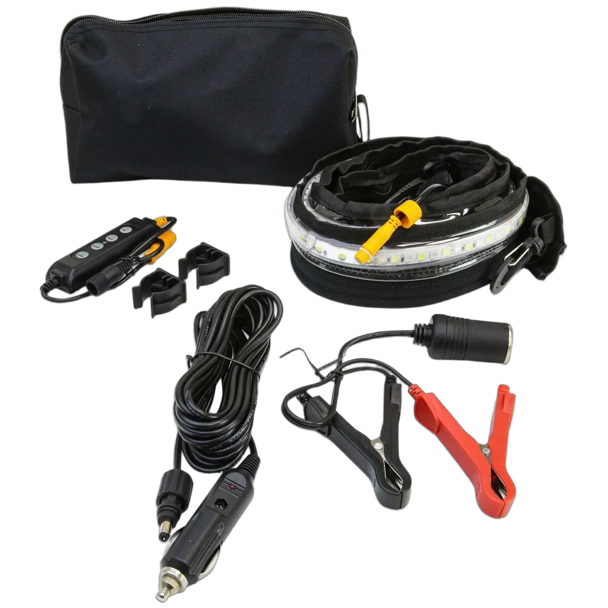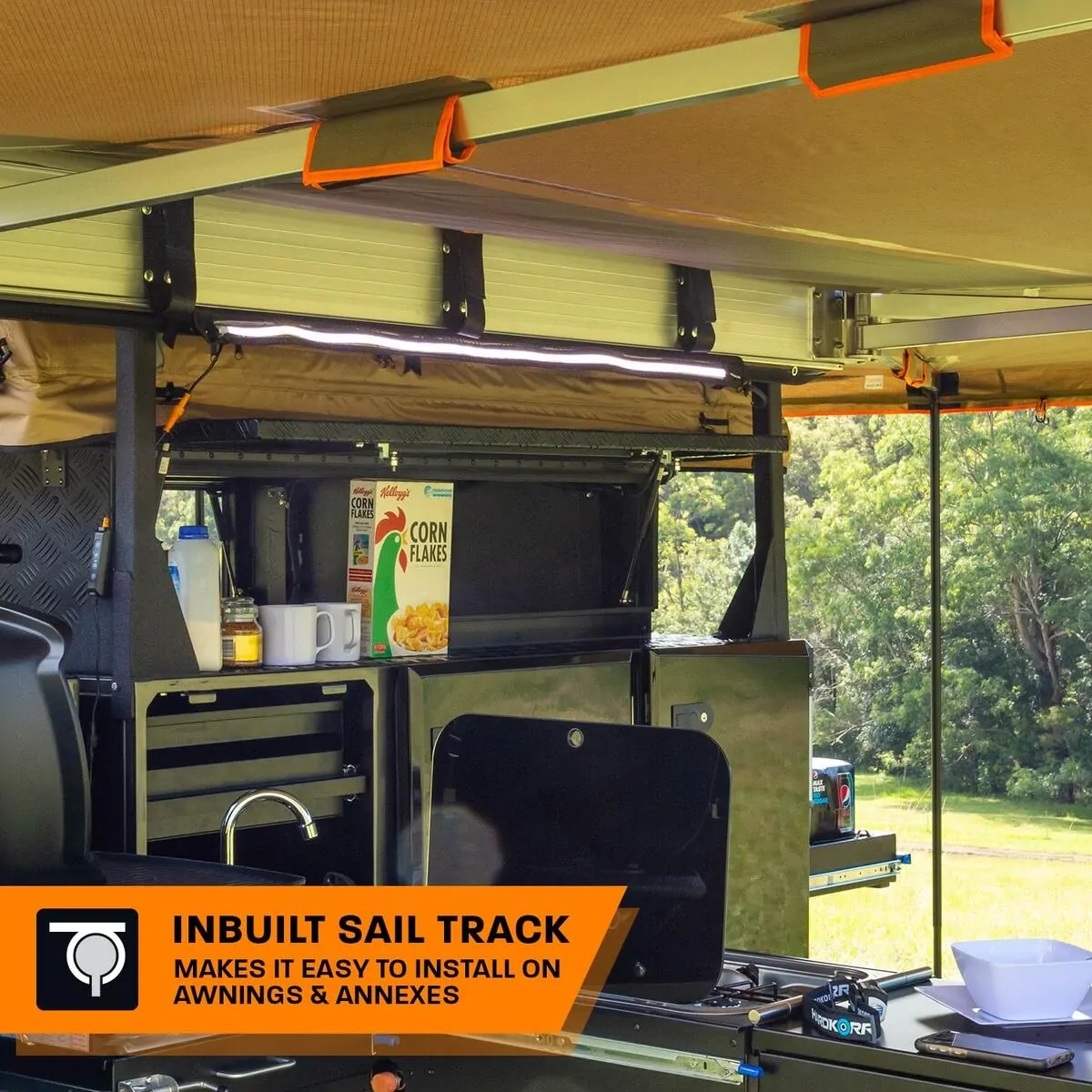 Our 1.2m Ezy-Fit LED Strip is an excellent choice when you want to quickly set up a light at your campsite. With carabiner ends, Velcro® straps, inbuilt sail track mount, bug-reducing orange light technology and an IP68 waterproof rating, it is incredibly versatile and can be mounted anywhere. It produces a whopping 1,100 lumens of light (white setting).