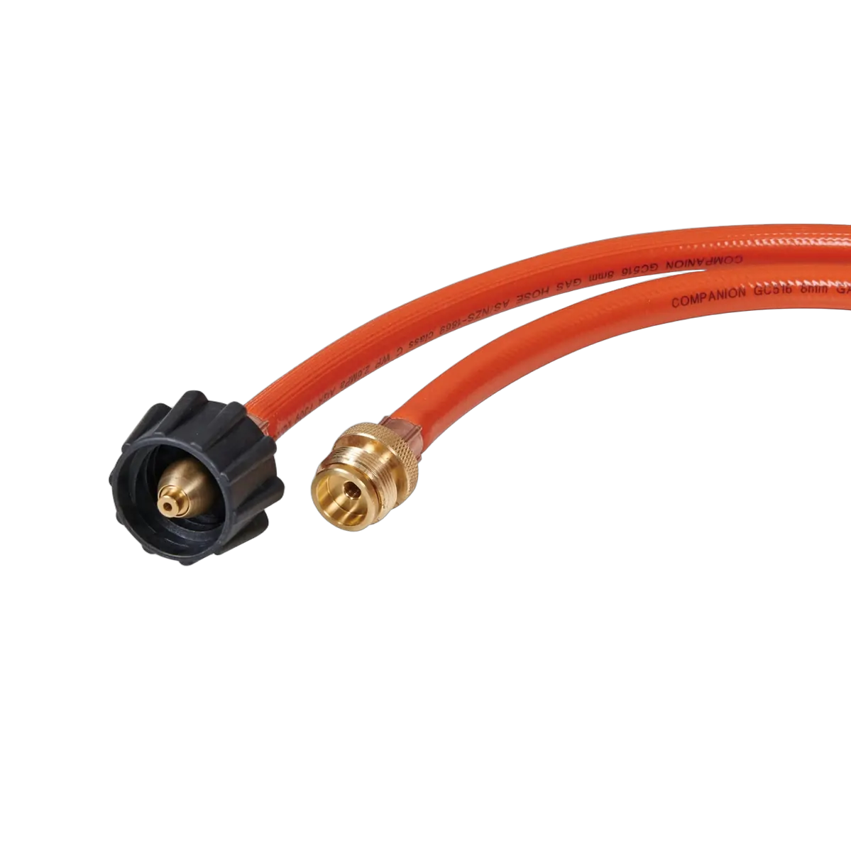 This high-pressure gas hose is designed to connect BOM-fitted appliances to gas cylinders, offering reliable and secure connections for outdoor use.