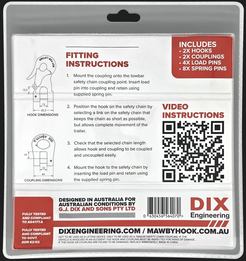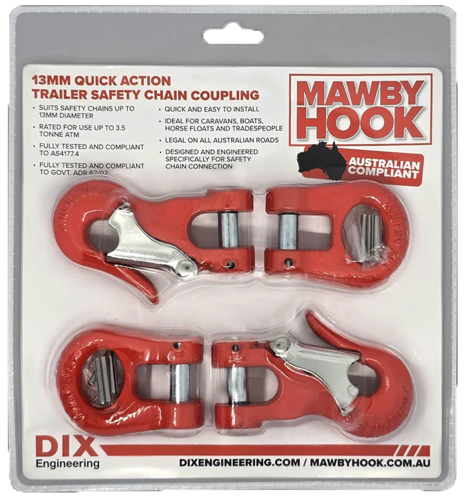 The Mawby Hook has been fully tested to AS4177.4 for caravan and light trailer towing components (patent pending).