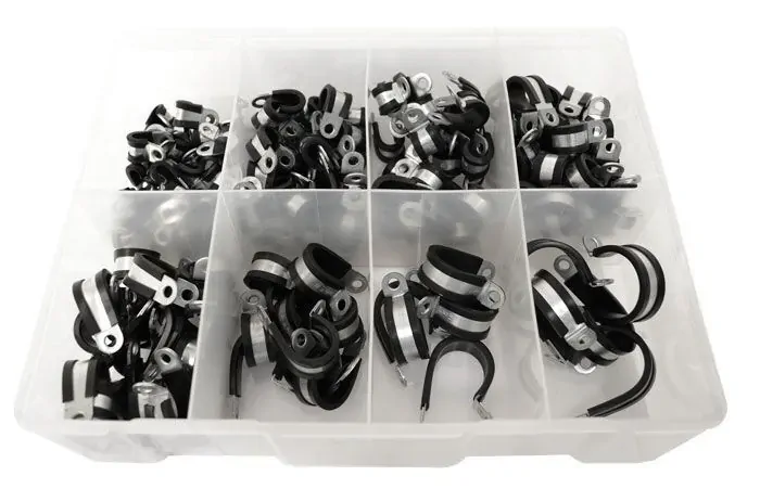 160PCS CABLE CLAMP ASSORTMENT WIDTH 15MM HOLE SIZE 6.4MM EPDM RUBBER MILD STEEL