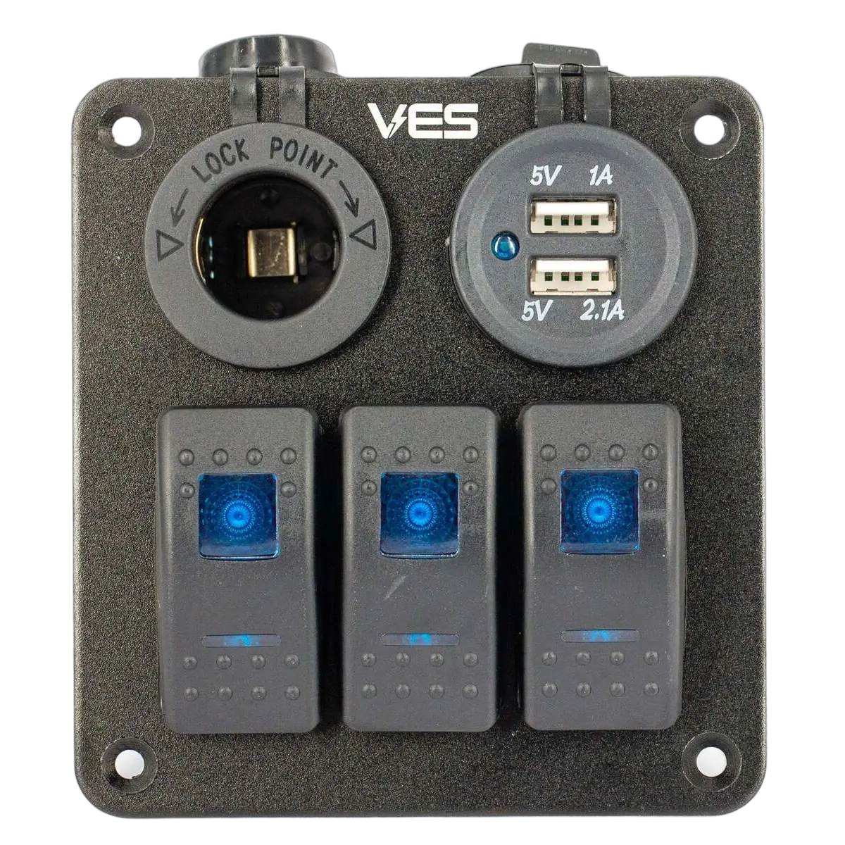 3 Rocker Switch + Marine Cig Socket + USB Sockets x 2 - 1 amp and 2.4 amp
