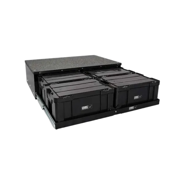 This 4 Cub Box Drawer / Wide kit provides a comprehensive and practical storage solution for 4x4s, SUVs and crossovers that have smaller than usual cargo areas. Easily transport stored items between a vehicle and the campsite, garage, store, etc. including easy access to coolers, fridges, gear boxes and more. Engineered tough for both on and off-road conditions.