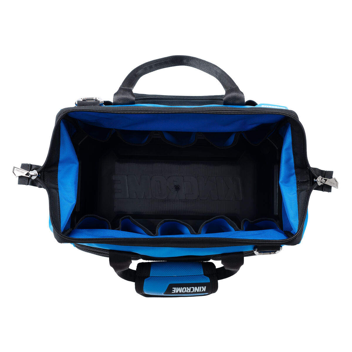 The 450mm Hard Base Wide Mouth Tool Bag is designed for durability and functionality, constructed from heavy-duty 1680D polyester that stands up to the toughest environments. The wide mouth allows for easy access and viewing of your tools, while the hard base provides impact resistance and waterproof protection, keeping your tools safe and secure. Featuring 16 pockets—6 external, including 1 large zipper pocket, and 10 internal—this bag offers ample space for organizing your gear. It also includes a concealed pouch for Bluetooth, GPS, and smart tracking devices, and has a water-resistant material treatment to protect against the elements. The ventilated padded back ensures maximum comfort, while the adjustable heavy-duty seatbelt shoulder strap with a wide padded shoulder pad allows for easy carrying. Reinforced twin webbing carry handles with a PVC grip and steel rivet reinforcements add strength and reliability. Additional features include heavy-duty metal D-rings, carabiner swivel clips, an external tape measure clip, and extra-large zip pullers, making this tool bag the perfect choice for those who demand both organization and durability in every job.