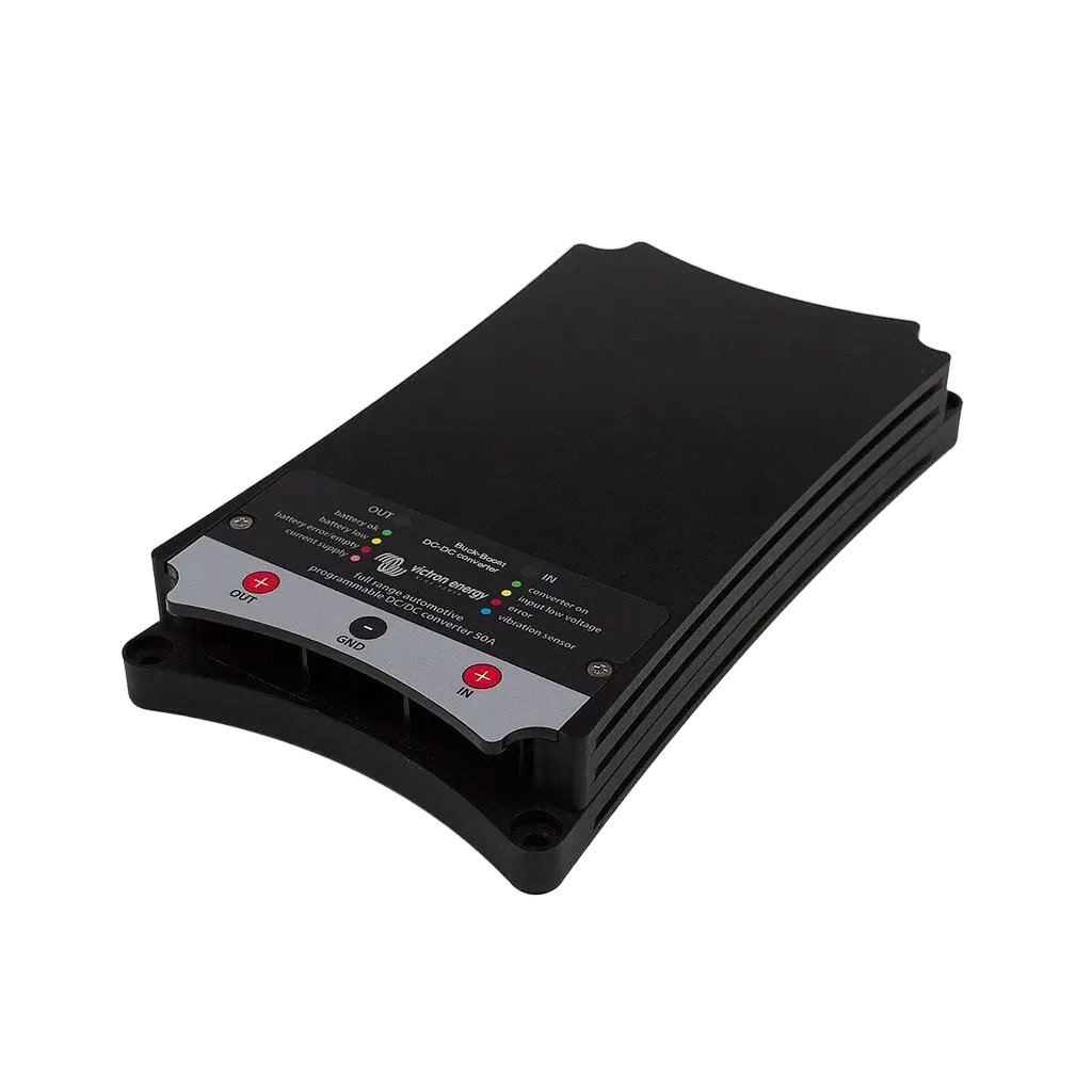 The Buck-Boost DC-DC Converter is a DC-DC charger for charging a 12V or 24V service battery in vehicles with a smart alternator. The converter will charge the auxiliary battery with a pre-set charge voltage, eliminating high voltages (e.g. Mercedes: 15,4V) and low voltages.