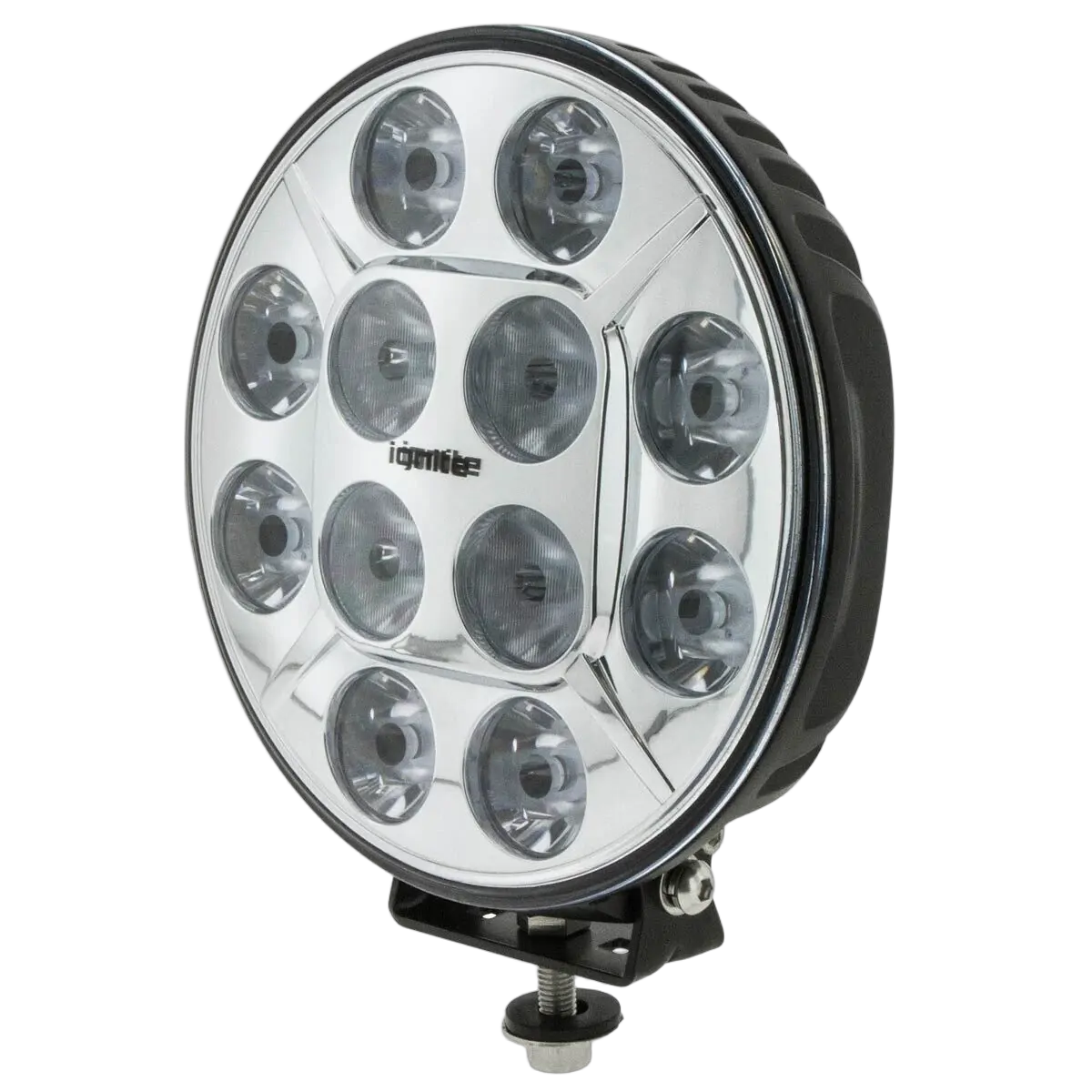 Ignite 9" Round LED Driving Light At Ignite, our focus on forward lighting is providing nothing but the absolute pinnacle in clean, white light emanating from the front of your vehicle. Our new 9" driving lights will not provide you with 800mts plus distance, with our slimline body design it is just not possible at this stage in technology. But what we do promise, is that up to 420mts +, our light's output is the whitest light there is. No black or dark spots in your field of view, no glare or "hot" flare, just even white light throughout the entire beam. We believe that you are better off seeing what may be coming from the sides of the road you're travelling on, with enough time to take the corrective course of action, than seeing a road sign reflected back from 1.6km's away with nothing but darkness in between. Sold individually so you can choose the setup that suits you ie. 1 of each Driving & Spot, 2 x Spot or 2 x Driving.
