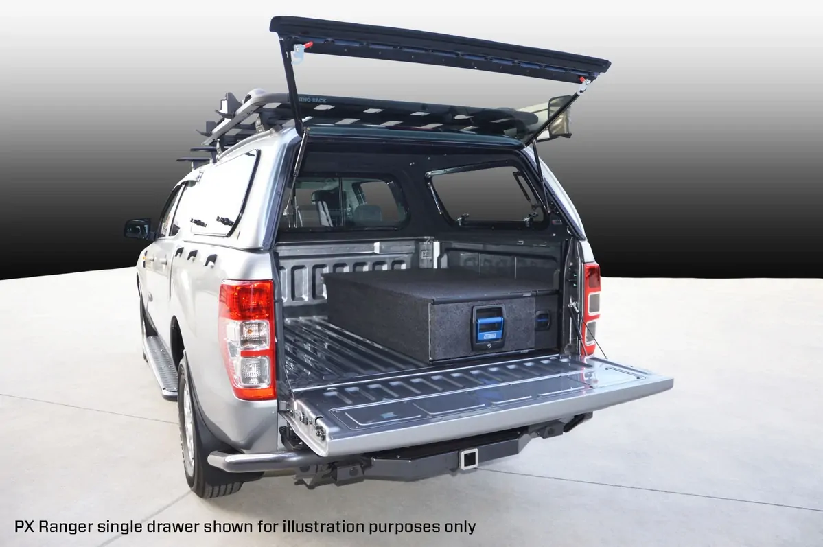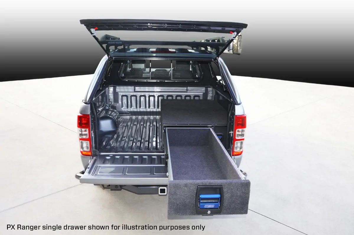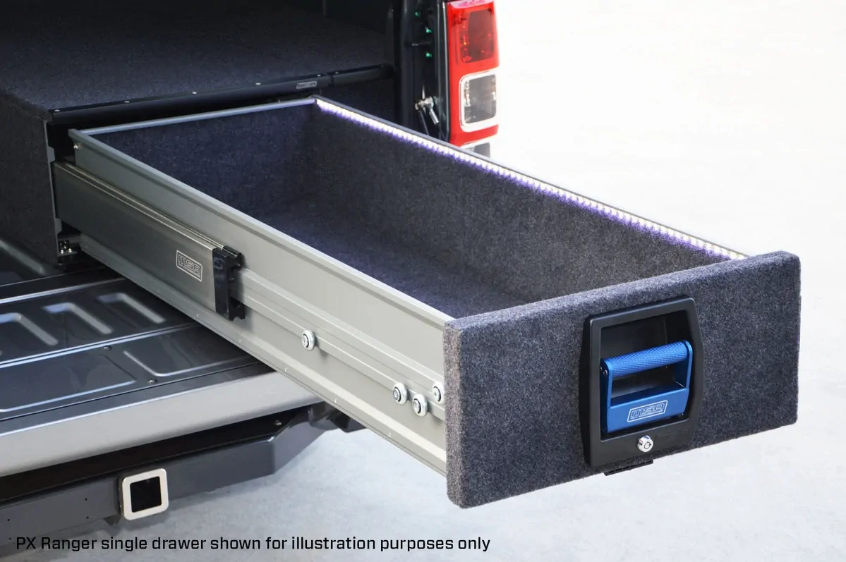 One of the lightest drawer systems ever made, the ADR Crash Test Certified MSA 4X4 Explorer Aluminium Storage Drawer System boasts more storage space than most other systems with the same outside dimensions! Patented “Pro-Glide technology smoothly handles up to 250kg per pair of drawers providing smooth opening under heavy loads as well as 100% drawer extension and access. The entire drawer comes out further than the frame! No hard to reach items in our drawers and no unpacking of contents to reach items at the back!