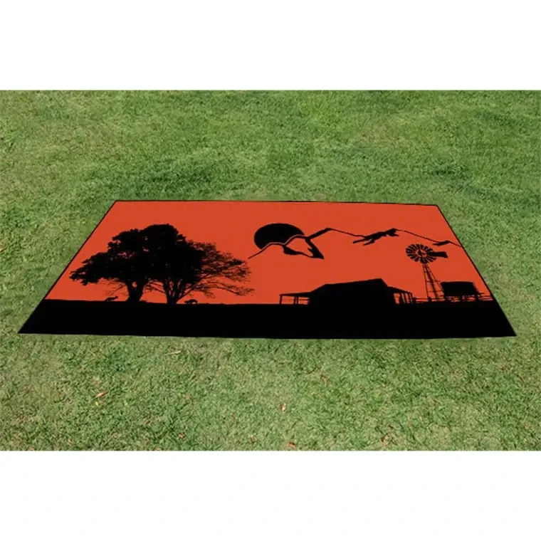 Our popular Homestead Sunset Caravan Mats are made from 100% recycled poly plastic and are the ideal camping or caravan annex matting or camping flooring for under the awning of your RV, motorhome, and camper trailer, hybrid trailer or even tent.