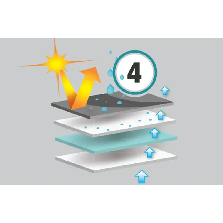 • Highly protective top panel made with four layers of Olefin HD™ material which beads water on contact while still completely breathable