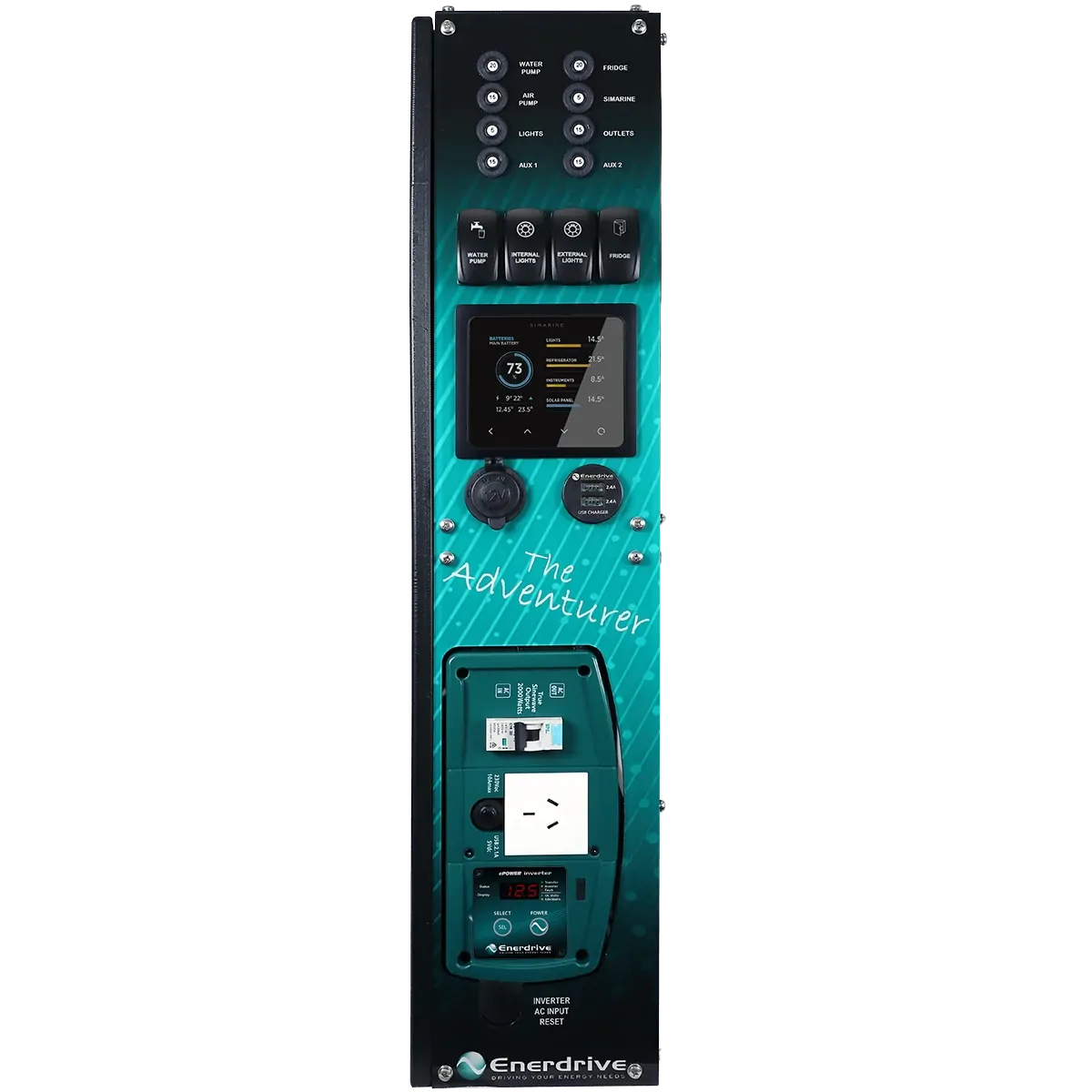 All Adventurer systems are pre-wired by Enerdrive so the only cabling required at installation time is load outputs, battery connection & vehicle/solar/tank inputs All systems are built into a unique compact box arrangement and designed to mount for example on either the front or rear bulkhead of a vehicle canopy. If you are interested in having custom engraving for switch/circuit breakers to your specific requirements, this option is available at an additional cost. Enerdrive are proud to bring to market this innovative design that can be installed by the manufacturer or end user in a neat one piece installation.