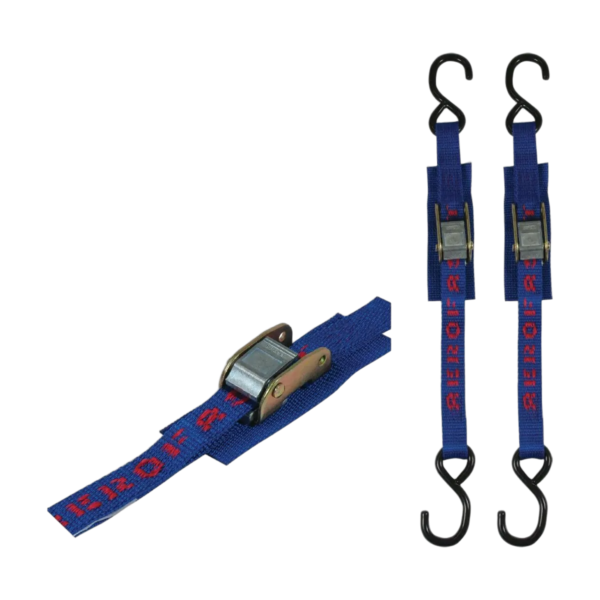• Pair of 25mm x 1.8m webbing tie downs with black plastic coated ‘S’ hook both ends