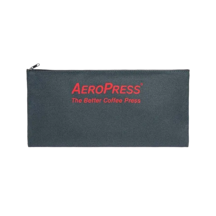 Spare replacement zippered nylon tote bag for carrying the AeroPress Original coffee maker. The AeroPress Original and its accessories pack up neatly inside the tote bag for easy transport. Tote bag also fits the AeroPress Go travel coffee maker.