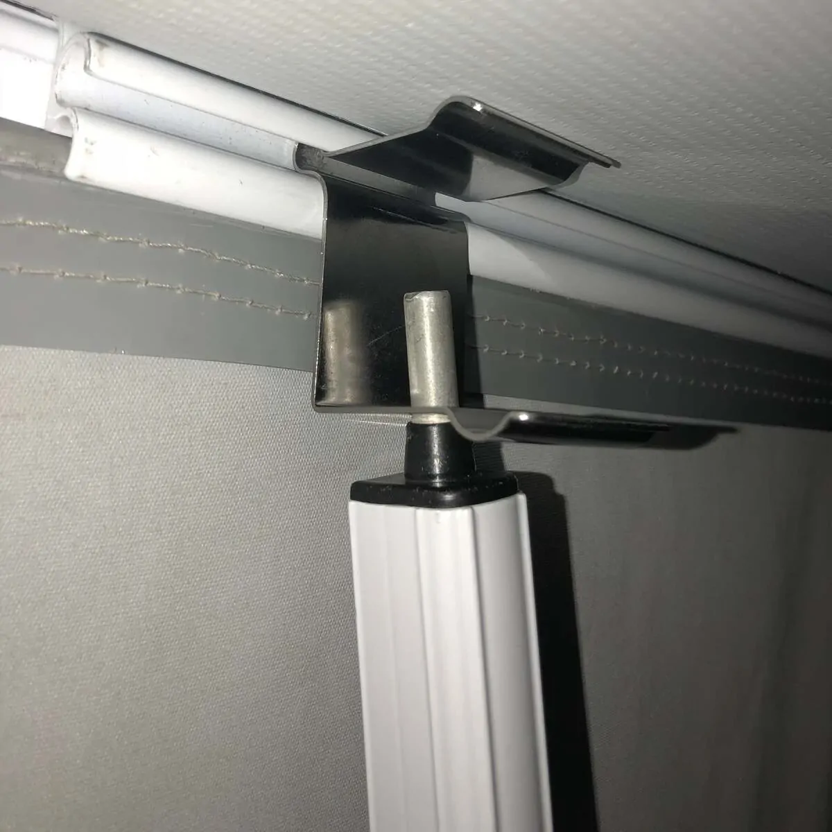 Anti-Flap Kit stainless steel pole support. Quickly and easily attach poles to your Anti-Flap Kit with our squeeze'n'slide bracket.
