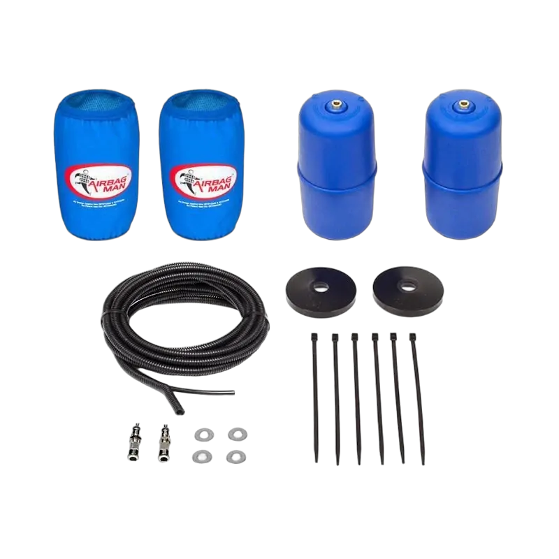 Airbag kit includes two airbags, high pressure sleeves, airbag end protectors, air line tubing and two inflation valves, full instructions included
