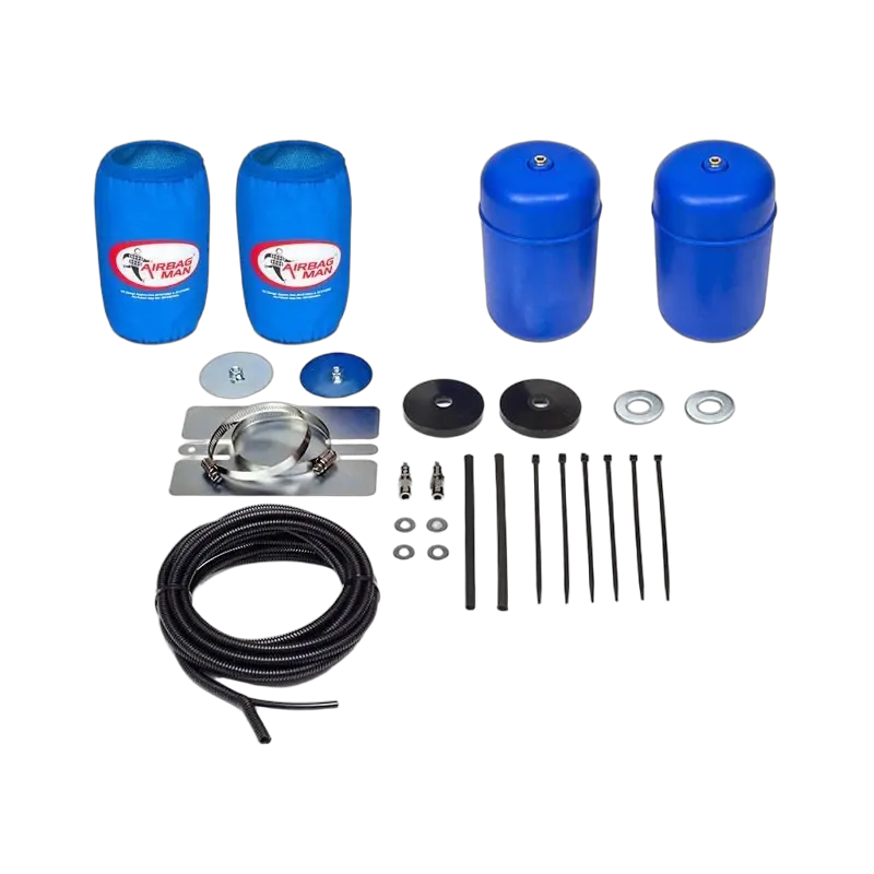 Airbag kit includes two airbags, high pressure sleeves, airbag end protectors, air line tubing and two inflation valves, full instructions included