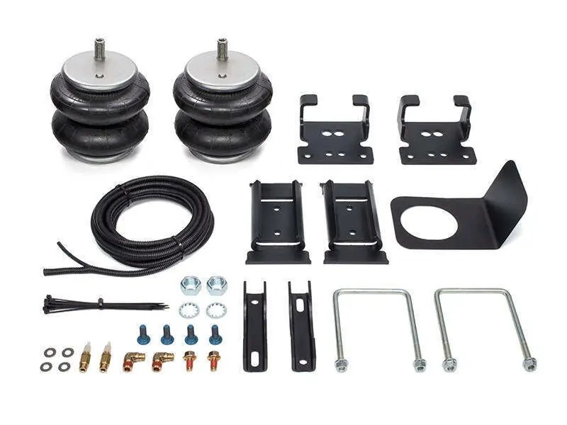 Airbag kit includes two airbags, vehicle specific airbag mounts, fasteners, air fittings, air line tubing and two inflation valves, full instructions included.
