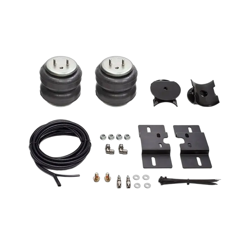 Airbag kit includes two airbags, vehicle specific airbag mounts, fasteners, air fittings, air line tubing and two inflation valves, full instructions included.