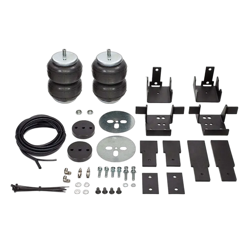 Airbag kit includes two airbags, vehicle specific airbag mounts, fasteners, air fittings, air line tubing and two inflation valves, full instructions included.