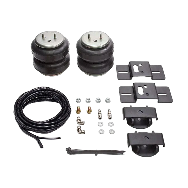 Airbag kit includes two airbags, vehicle specific airbag mounts, fasteners, air fittings, air line tubing and two inflation valves, full instructions included.