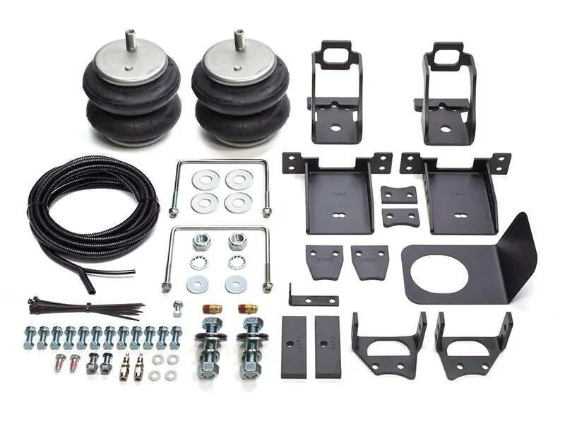 Airbag kit includes two airbags, vehicle specific airbag mounts, fasteners, air fittings, air line tubing and two inflation valves, full instructions included.
