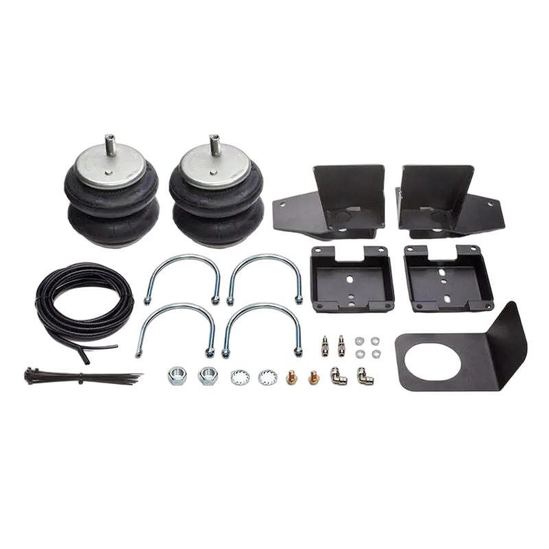 Airbag kit includes two airbags, vehicle specific airbag mounts, fasteners, air fittings, air line tubing and two inflation valves, full instructions included.