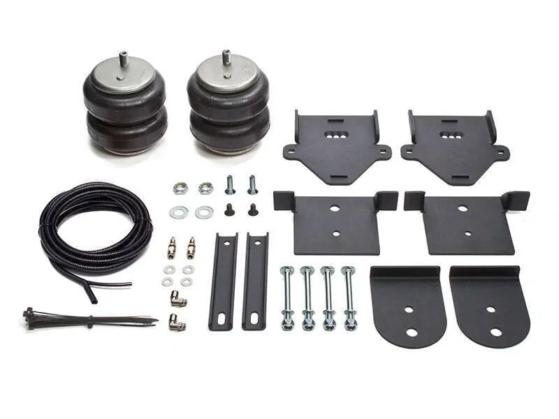 Airbag kit includes two airbags, vehicle specific airbag mounts, fasteners, air fittings, air line tubing and two inflation valves, full instructions included.