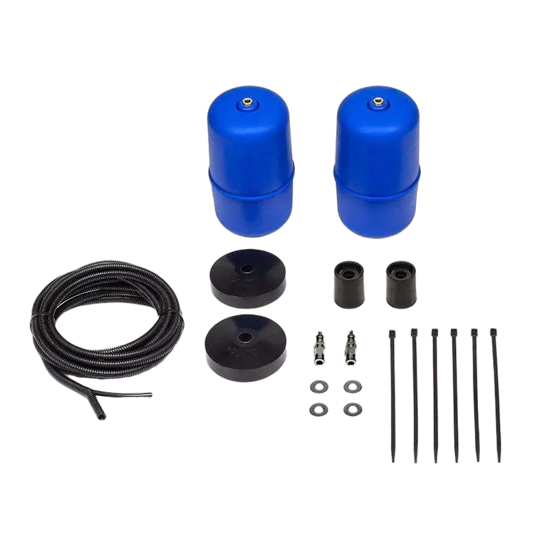 Our Air Suspension kits utilising Firestone Airbags are designed to fit inside the existing Coil - springs to provide front to back & side to side levelling control to a vehicle when towing or carrying uneven loads.