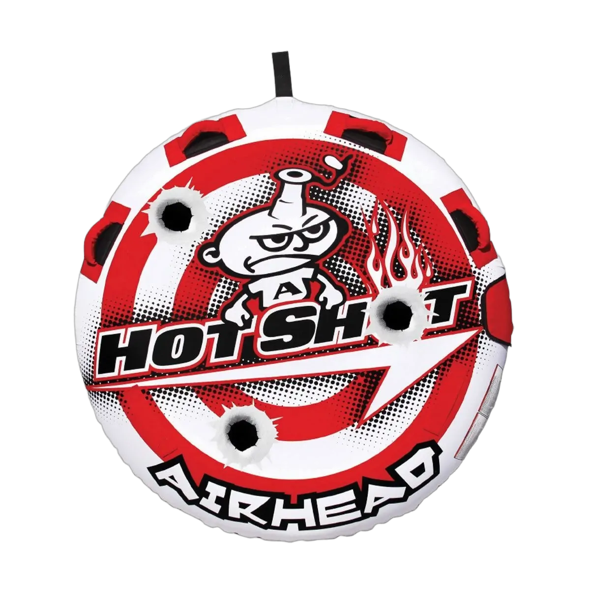 Hot Shot has 4 deluxe handles with neoprene knuckle guards and is equipped with a Speed Safety Valve for quick inflating and deflating. Designed for 1 adult or 2 small children.