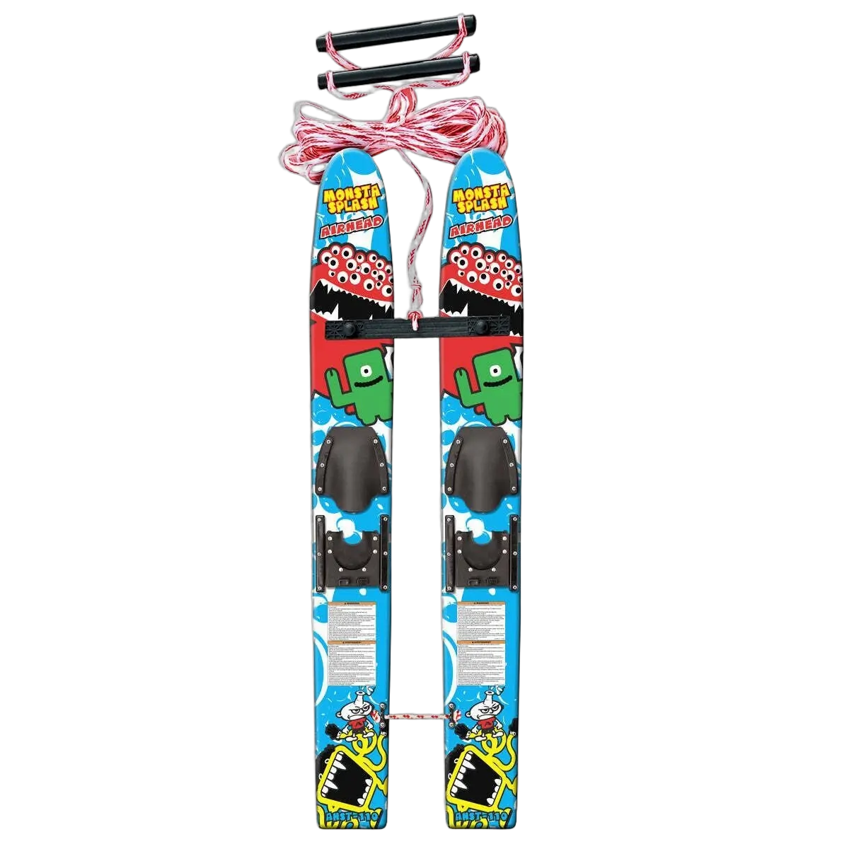 These 119cm wood trainers make learning to ski fun for beginners under 45kg. The double handle rope assembly, removable crossbar and ties at the tail make it easy to start and control. The adjustable bindings fit child size 12 to adult size 5. Fibreglass reinforced nylon rudders increase stability and tracking.