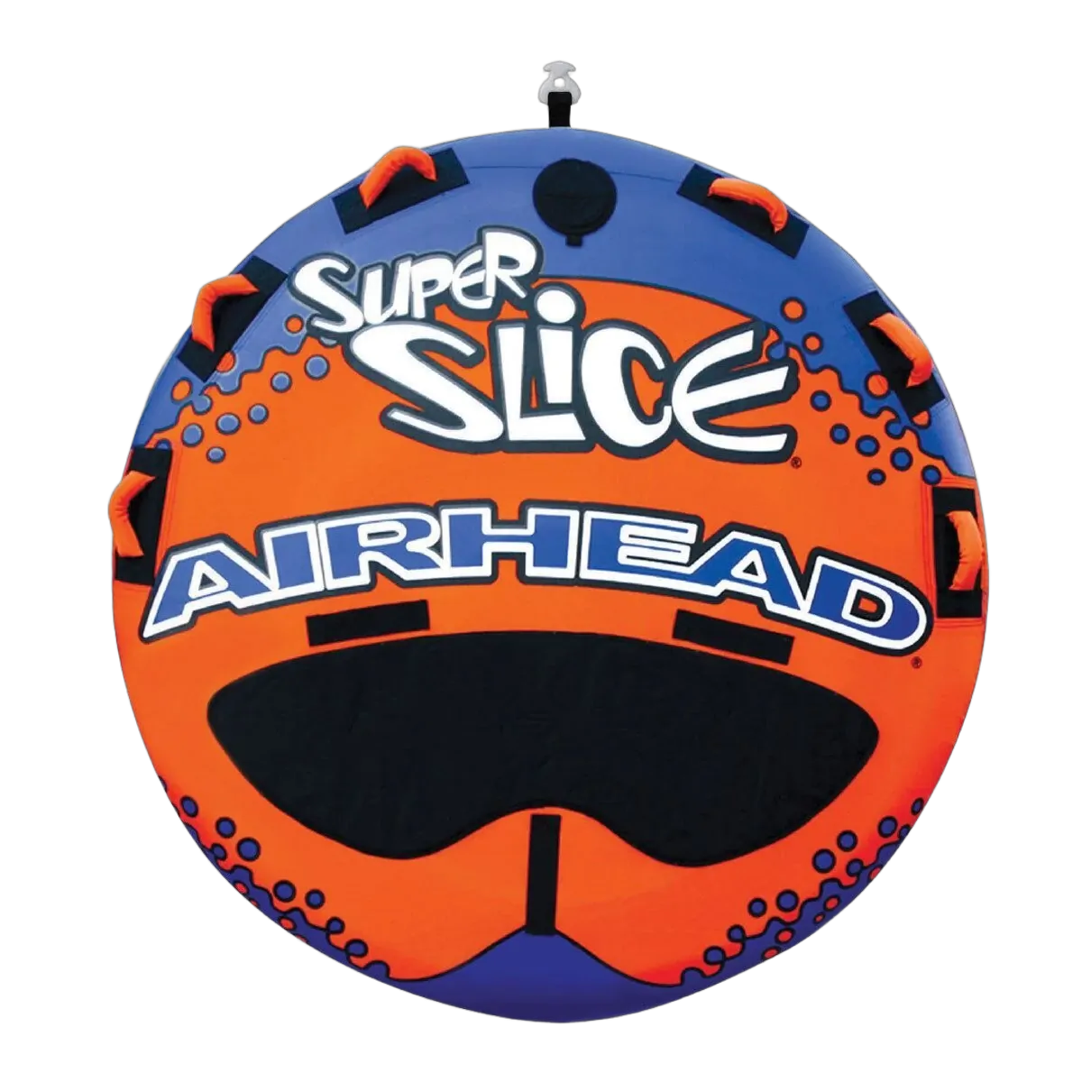 Super Slice, Airhead’s high-performance 3-rider low profile deck tube features an oversized topside neoprene body panel and 6 deluxe handles with neoprene knuckle guards, an Airhead exclusive. The 30-gauge virgin PVC bladder is fully encased by a rugged double-stitched nylon cover. Super Slice is equipped with a heavy-duty Kwik-Connect and Boston valve for the ultimate in convenience. It’s tapered in back to only 15cm, for easy boarding from the water.