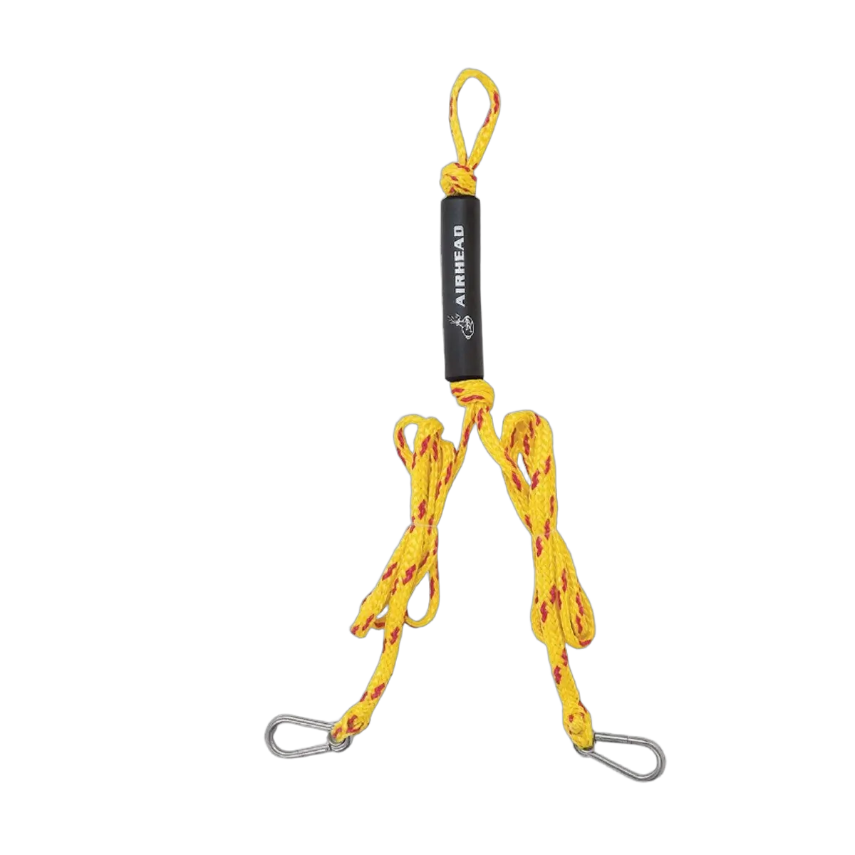 If your boat isn’t equipped with a pylon or ski eye and you enjoy watersports activities, you need a tow harness. It creates a tow attachment point at the centre of your boat, behind your outboard or stern drive. This tow harness is perfect for pulling a skier, wakeboarder, knee boarder or 1 rider tubes. Simply clip it onto your boat with the hooks provided, and attach your ski or tube rope. A 15cm float keeps the attachment loop floating on top, away from your propeller. 3.6m long to fit larger boats and pontoons. Snap hook opening width 1.1cm. Yellow / Red.
