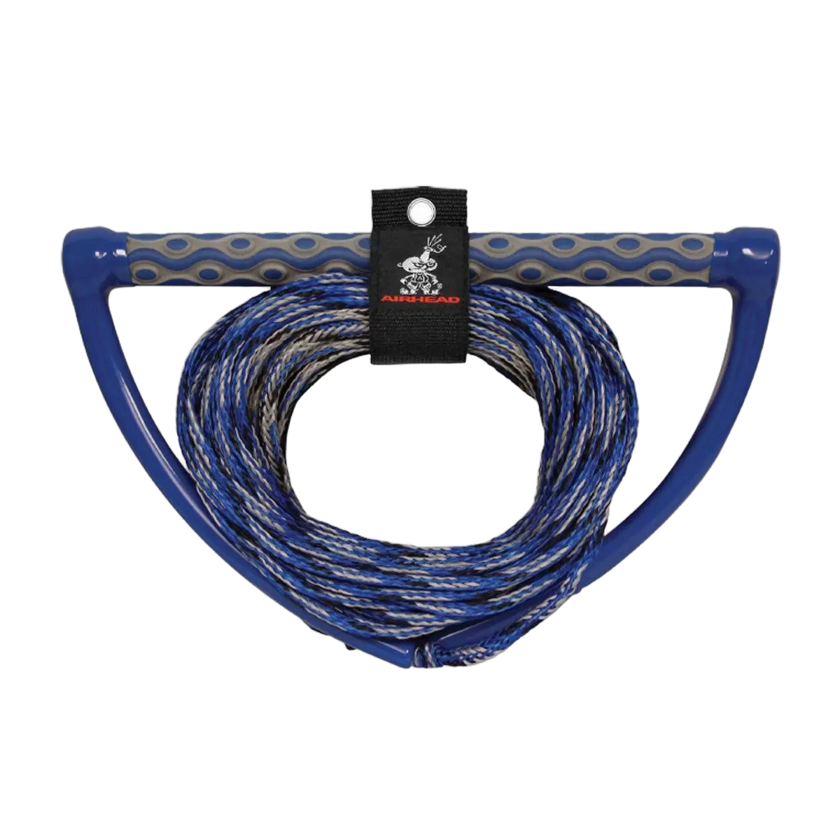 This wakeboard rope has a head turning 38cm.Squid patterned EVA-wrapped grip with a floating aluminum core.The 0.79cm, 16 strand, U.V. treated low stretch buoyant rope has 3 sections for wakeboarding at 13m, 16m or 19m (45, 10, 10).Full length finger guards help create a comfortable split finger grip. A Rope Keeper is included for tangle-free storage.