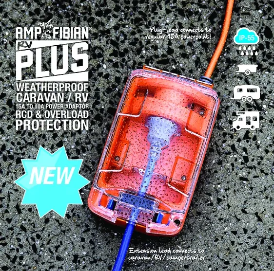 The Ampfibian® RV-PLUS is the perfect power adaptor for caravan/RV owners. Compact for travel, and weatherproof for outdoor use, it lets 15A devices connect legally to 10A power points and includes fast acting earth leakage safety protection.