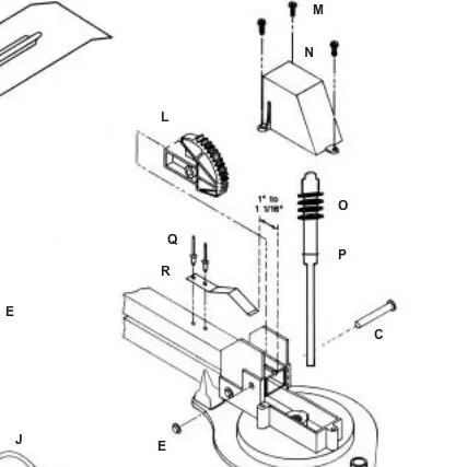 The shaft passes through the assembly to engage the worm gear drive. Used for raising and lowering the antenna head. Shown on diagram as vertical shaft 'O'