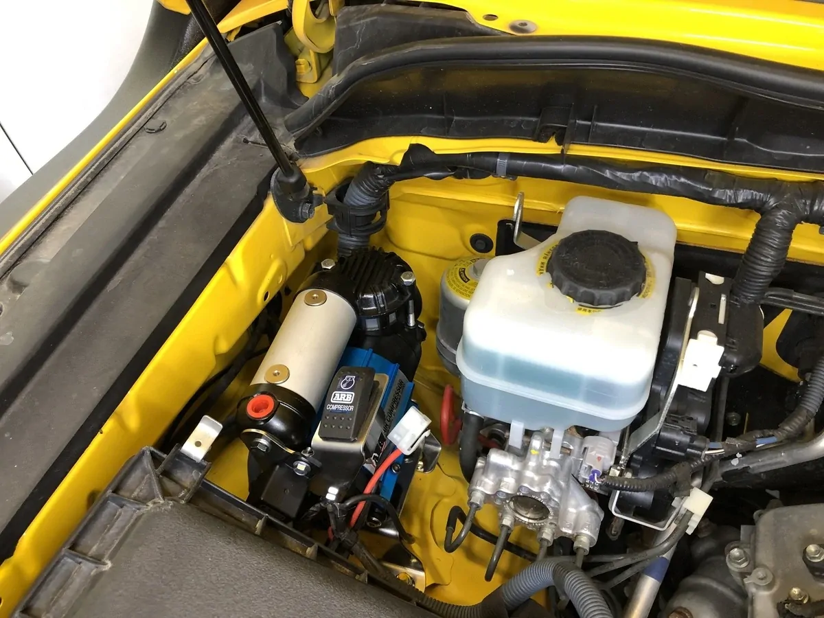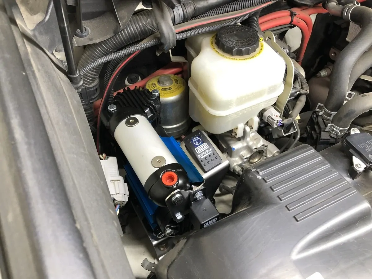 Stainless steel bracket to mount ARB Air compressor behind RH Airbox
