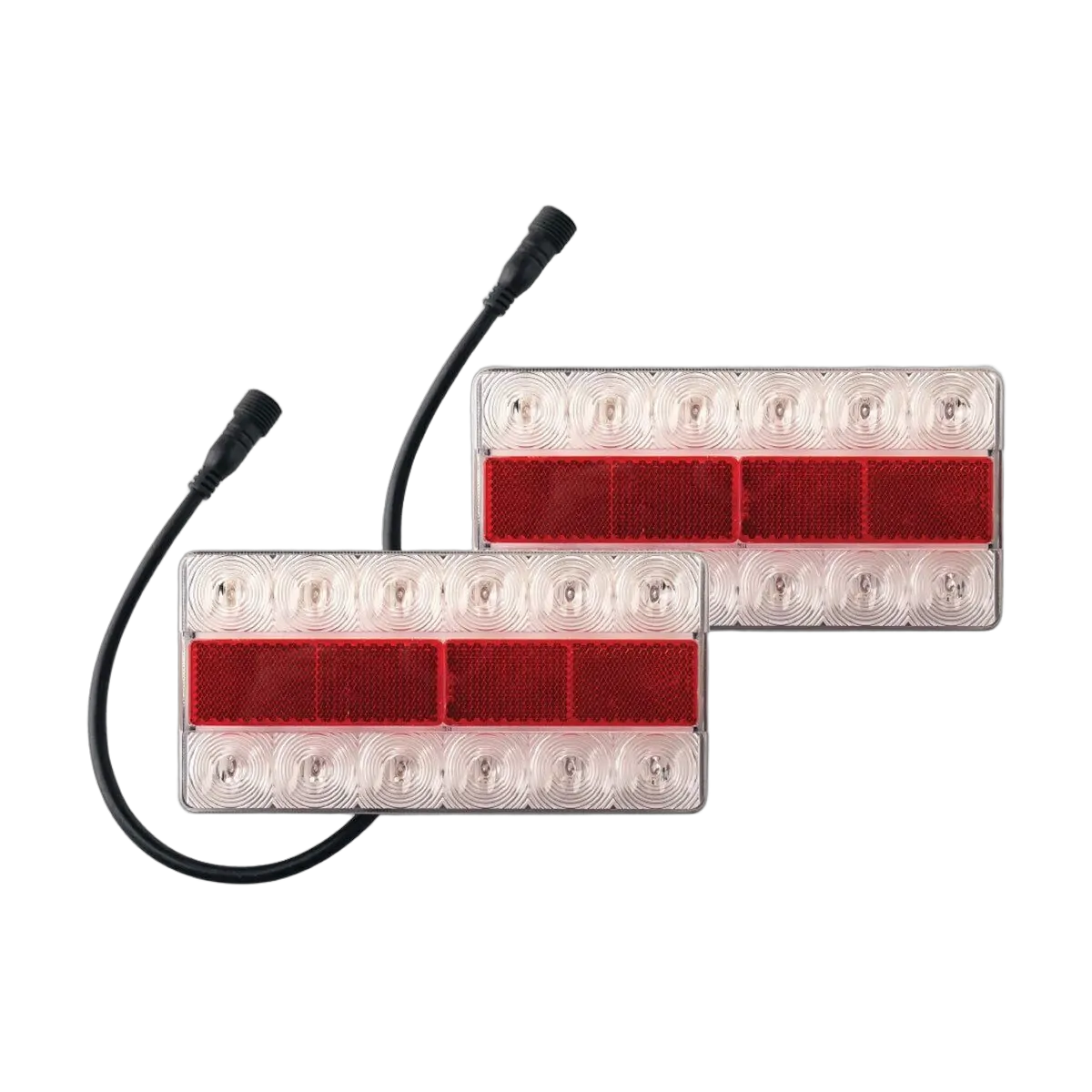 Fully submersible 100% waterproof LED trailer lights. Designed and manufactured for the harsh marine environment with high impact resistant lenses. Light set sold as a pair and functions include stop, tail, indicator, reflector and licence plate light (right hand only). Supplied with 30cm lead and connection plug.