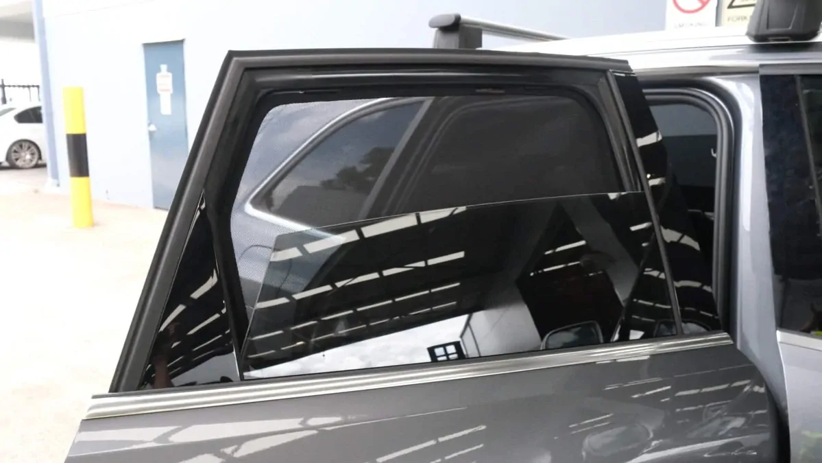 Note: Our custom sun shades block out a significant amount of light and UV rays that enter from the front windscreen, however due to the angle of the front windscreen and additional sensors or different mirror shapes/sizes available for different models, there may be slight gaps around your rear-view mirror or sides to allow the sun shade to fit.