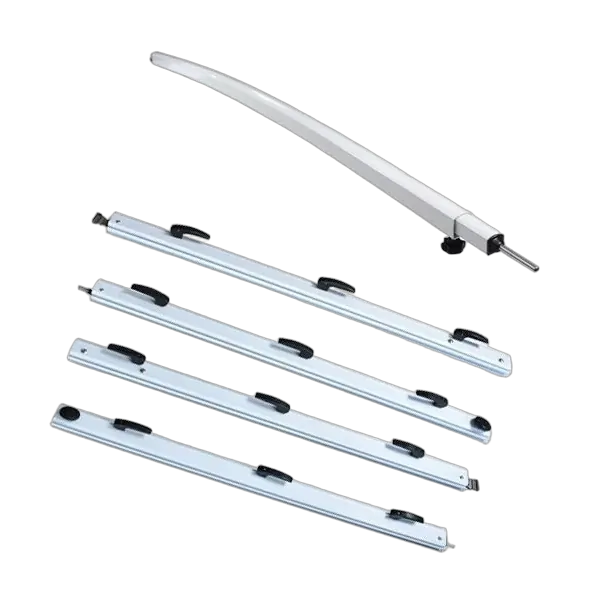 The Slight Curved Roof Rafter has been developed to help overcome windflap in the fabric of the awning and to prevent water from pooling.