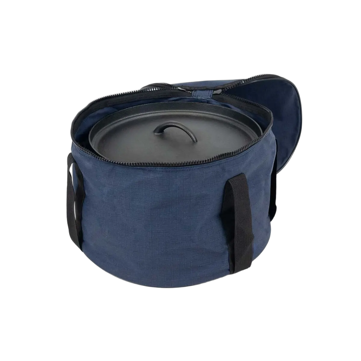 Our Canvas Pot Bag is made out of heavy duty Ripstop canvas and is perfect for storing away your cast iron pots. This sturdy bag contains a plastic insert in the base for added strength when packing away your cast iron cookware.