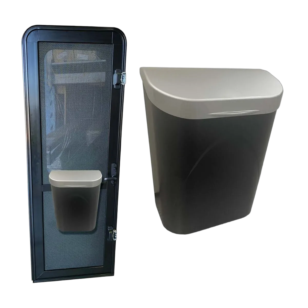 Aussie Traveller Door DC Bin, Black With Silver Lid