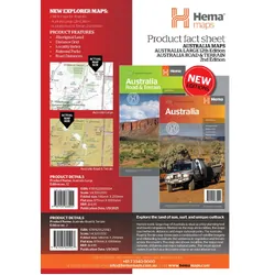 Hema’s iconic large map of Australia is coloured to reflect the country's climate zones. Marked on the map are localities, the major road network, distances and major national parks. The visual appeal makes it perfect as a decorative map or an educational tool. On the reverse side is an overview of Australia's iconic touring regions featuring history, geology and landforms, nature, bucket-list attractions and iconic 4WD tracks.