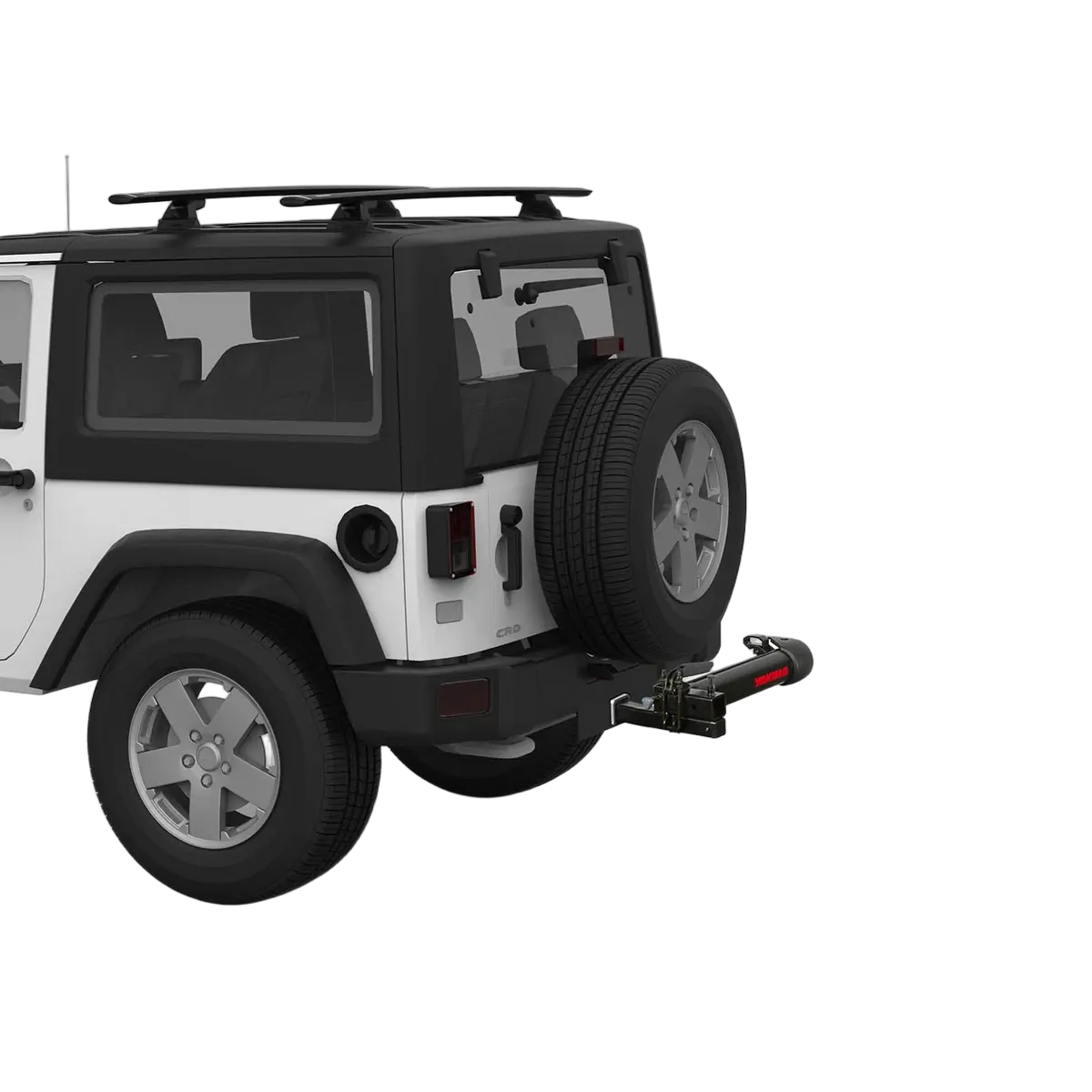 - Hitch swing adapter converts most 50 mm (2") hitch products to a swing-away rack