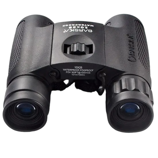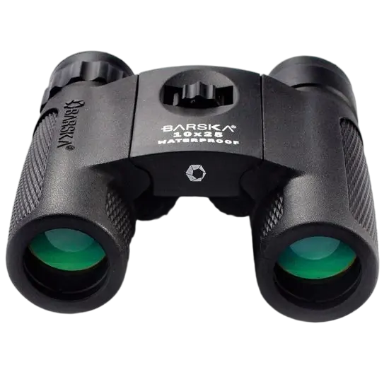 The Barska Blackhawk 10x25mm WP Compact Binoculars are a tough, water-proof binocular that has been designed to handle a wide range of outdoor activities, such as bird watching, hiking, and nature observation. With a compact roof prism design, the Blackhawk 10x25 Binoculars are compact enough to be easily slid into a larger pocket or small pack for easy carrying. A tough protective rubber armor with a newly added diamond cut grip ensures a secure grip while protecting the binoculars from tough use.