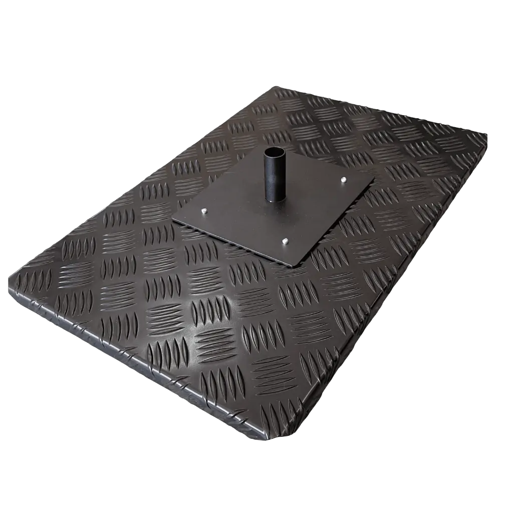 Aluminium chequer-plate tray with upturned edges. Includes swivel mounting plate attachment. Fits existing BBQARM arms.