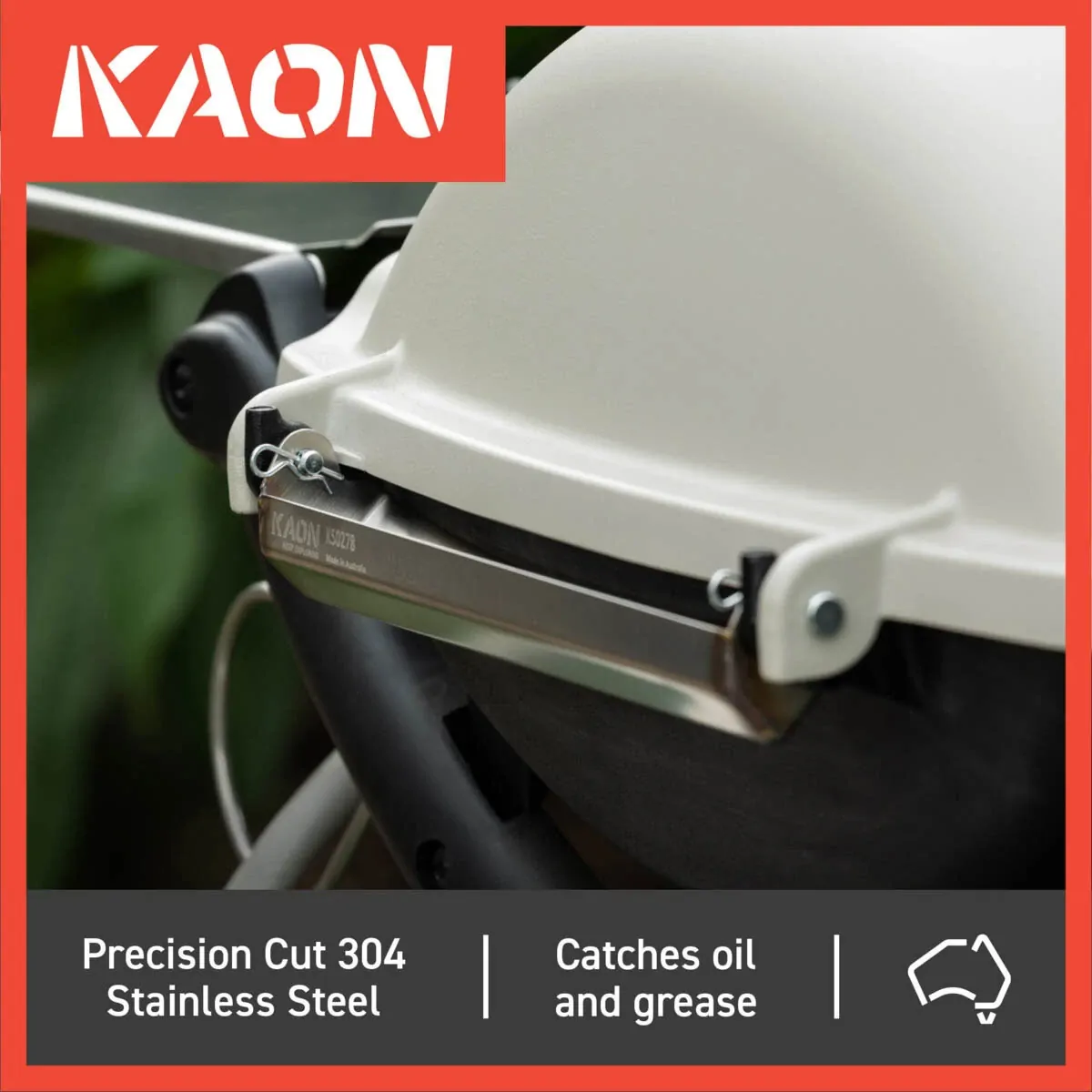 We love our Weber, but we find that oil and grease build up on the lid eventually drips down and makes a mess, both of the BBQ and the surface it’s sitting on. To combat this, we designed our lid drip tray – think of it as a BBQ Bib for your dribbling BBQ.