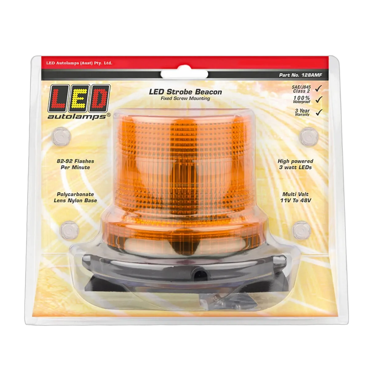 Amber Strobe Beacon, Fixed Mount, Ip67