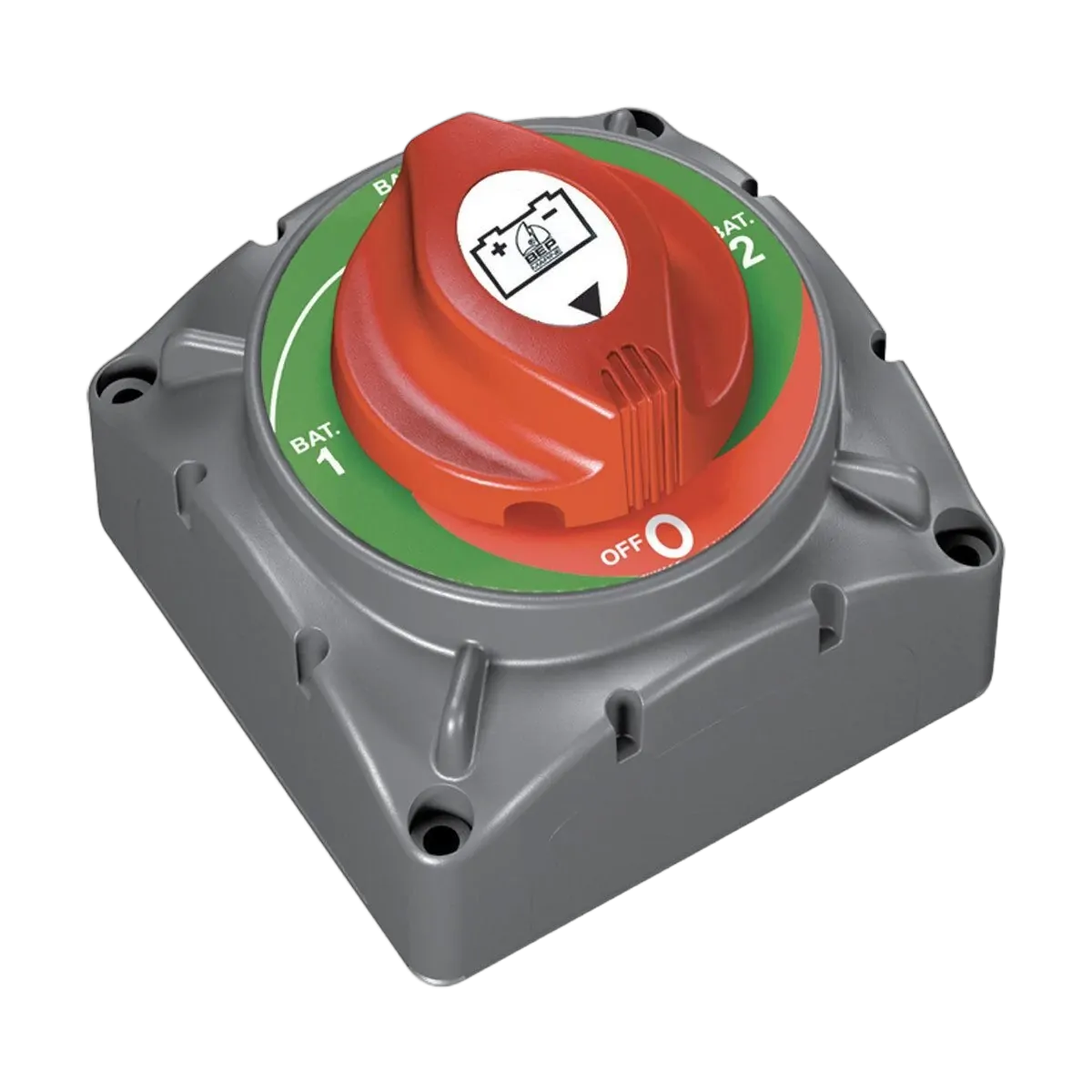 The 721 heavy duty selector switch provides four possible operation settings, Off, Battery 1, Both and Battery 2 giving the choice of charging a selected battery or isolating current draw to a single battery. The switch can be recess mounted in a 85mm hole or surface mounted. Screw holes 5mm roundhead. Removable rear cover insulates the rear terminals against short circuit and removable side plates provide access for heavy duty battery cables. Please note this system will not protect electronics from harmful engine starting spikes.