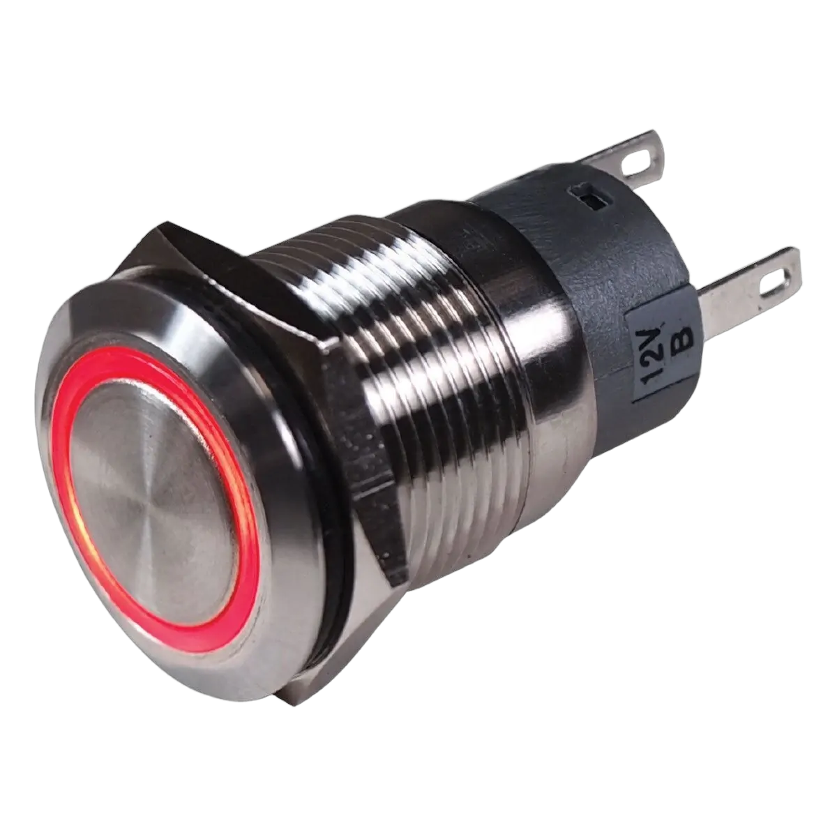 Manufactured using 304 grade stainless steel, these IP67 rated panel mount switches when instalLED are ideal for light switching or being used in custom switch and dash panels. The switches have the ability to be wired to allow the light rings, available in either red or blue surrounds, to show power to a system or may be utilised as convenient switch back lighting. Also included in the range are matching stainless steel warning buzzers with a loud 80dB tone and LED light rings. This new switch range is available in a variety of combinations, including momentary and latched Actuation. Available in either 12 or 24 volts each switch carries a maximum of 5 amps.