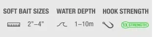 - Mid hook baitkeeper allows for easy rigging on all types of soft bait material