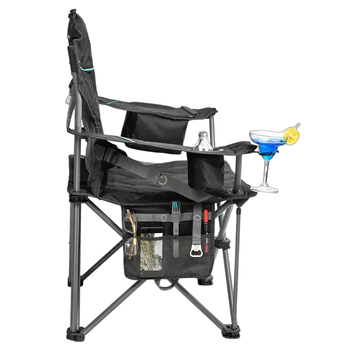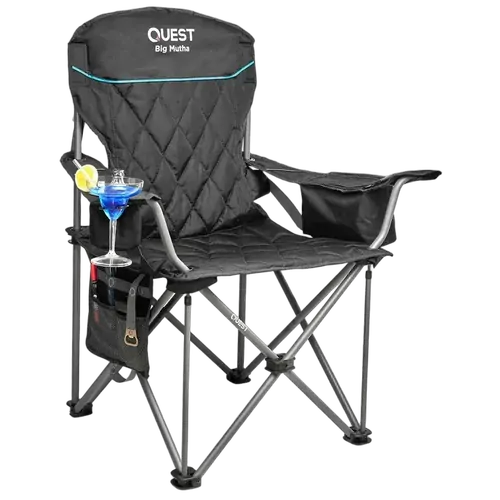 The Oztrail Roamer Chair offers comfort and durability with a heavy-duty 22mm steel frame, padded seat and backrest, and lumbar support. Ideal for outdoor use.