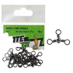 Bite Science 3-Way Barrel Swivels also known as crossline swivels are popular with anglers looking to make paternoster style rigs. This allows for two leaders off one main line and can be used for drifting and bottom fishing. The leaders swivel independently reducing line twists and helping to reduce tangles. The black finish is to help reduce unwanted light reflection off the swivel.